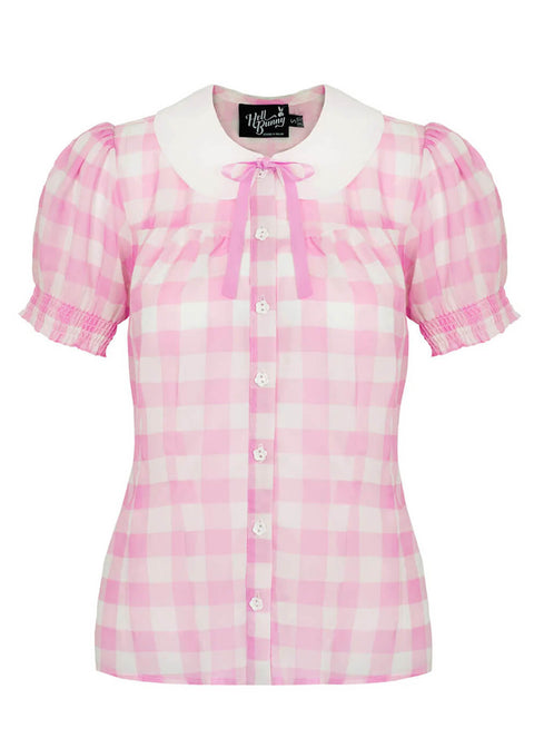 Think: Brigitte Bardot on a sunny day at the Côte d'Azur — effortlessly chic, with that irresistible “je ne sais quoi.” The pink-and-white gingham check in chiffon gives it that dreamy picnic vibe, while the white collar with a pink bow adds an instant cute overload. Puff sleeves included… and you’re ready for compliments (and spontaneous milkshakes).