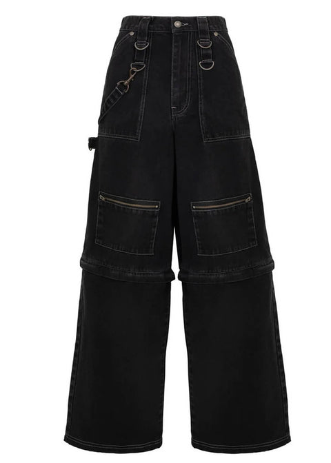 Baggy, faded black, packed with hardware and zips below the knees, allowing you to transform them into shorts in a snap. Mood: everything today. Tomorrow: even more.