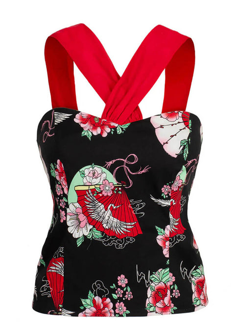The princess seams create an incredibly feminine line, and the red straps provide that signature retro "pop" without being overwhelming. Pair it with the Yuna Skirt for a complete outfit, or wear it with high-waisted trousers for your new favorite look ♥