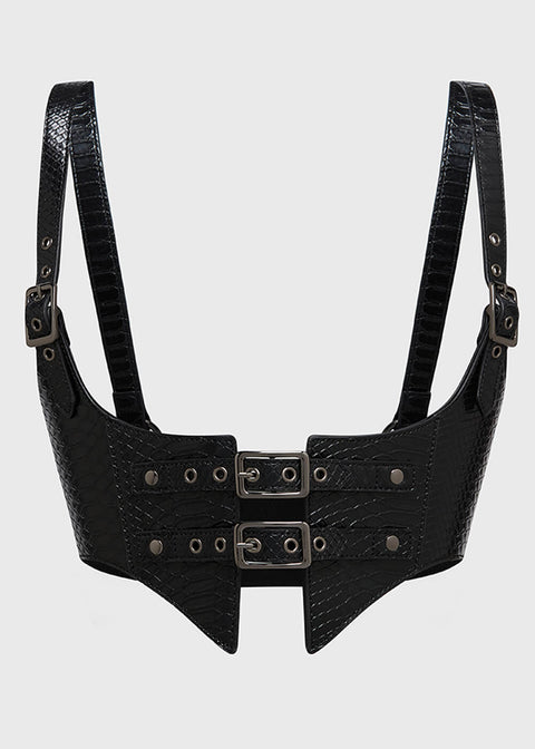The Venomous Rose Underbust Harness does exactly that: featuring a curved corset shape, buckle closure, and a faux snake skin look that adds an immediate touch of danger. Not subtle, yet powerful. Just perfect!