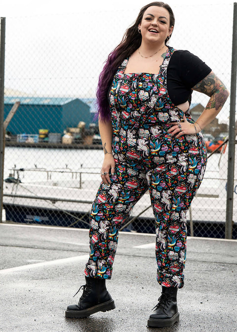 Rebel Romance Pride Tattoo Dungarees Black