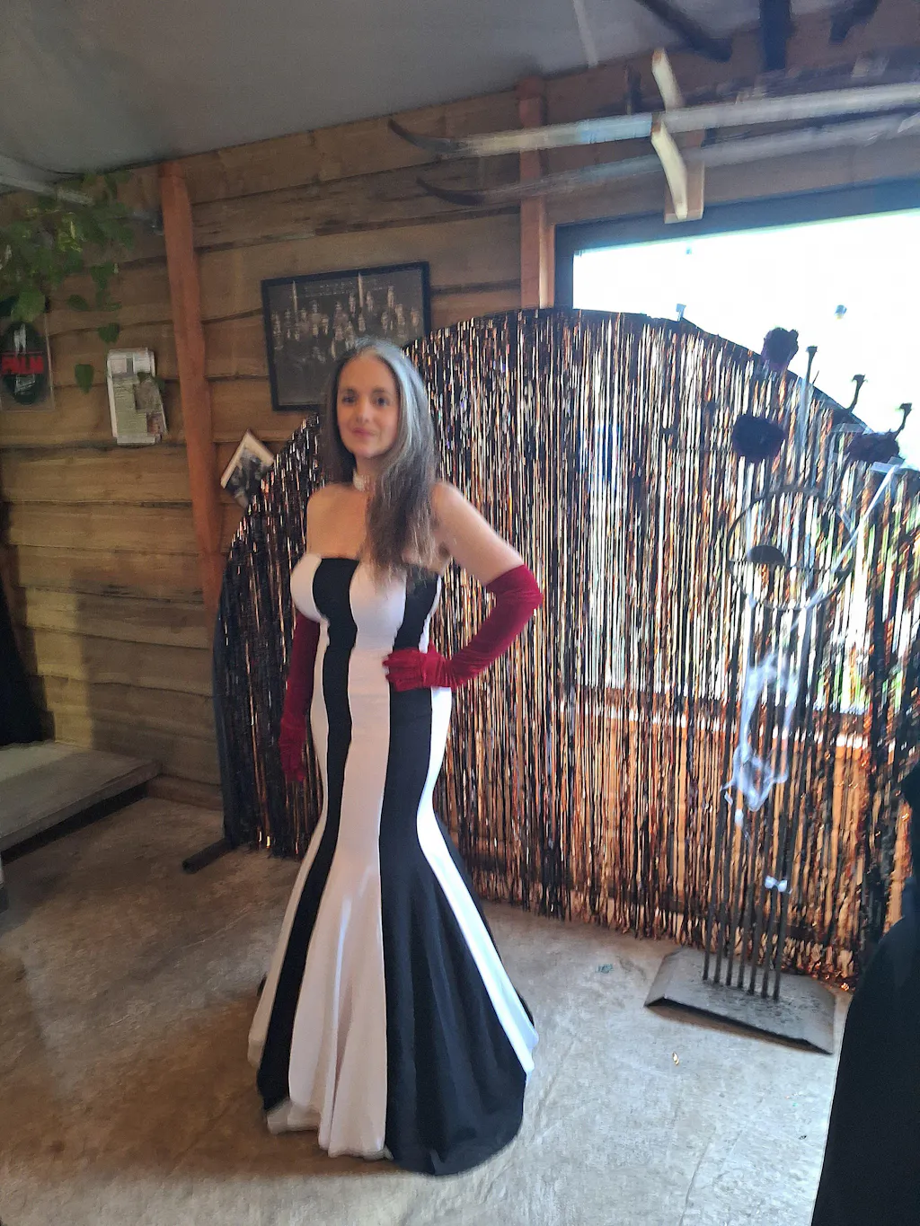 True connoisseurs will immediately recognize the inspiration behind this stunning evening gown: Beetlejuice! It features a strapless design with a beautiful ruffled detail at the bust and gracefully cascades into a mermaid silhouette to the floor. The hem is equally exquisite and falls a bit more easily than it appears in the picture, which shows it with a special petticoat underneath. It will be in your shopping cart before you can say "evening dress" three times!