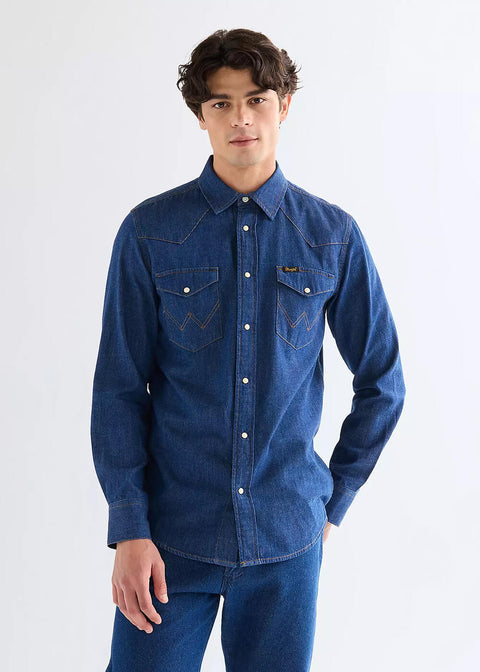 Wrangler Mens Western Shirt Caroline Creek Blue